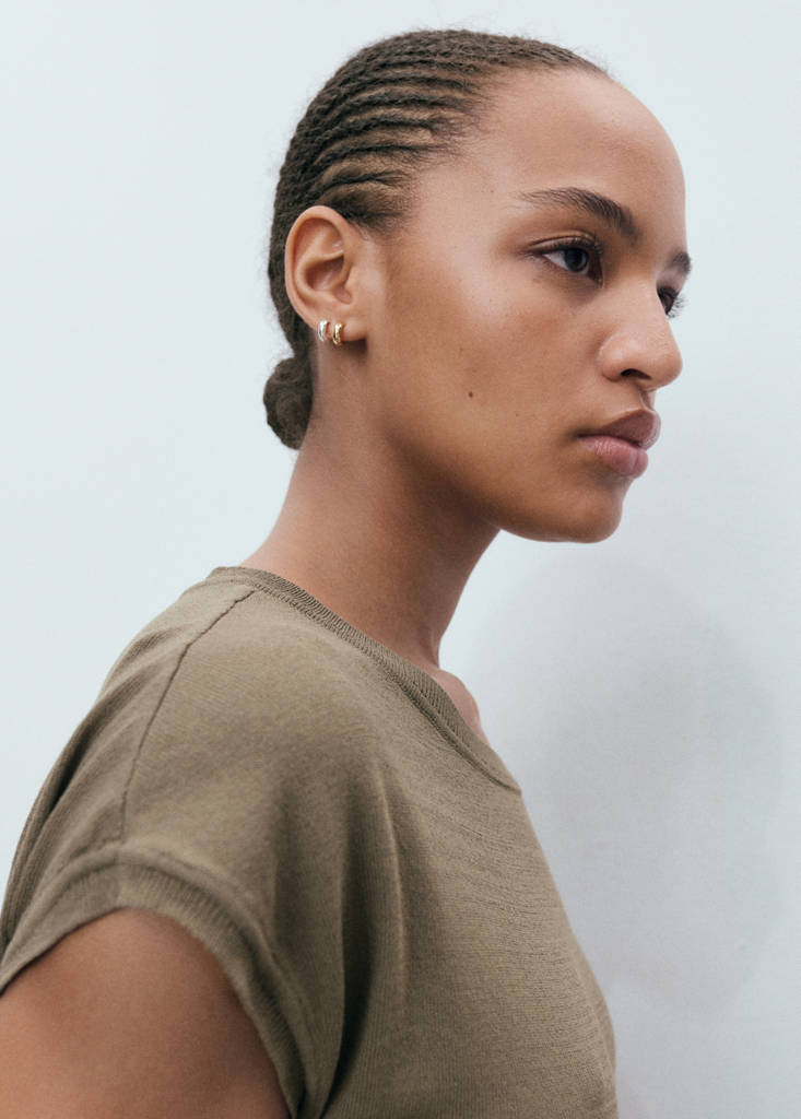 Ovaj pulover bez rukava redefinira eleganciju svojim asimetričnim ovratnikom, ukrašenim suptilnim naborima i metalnim detaljem. Savršen za suvremen i ležeran izgled. Dostupan je u Plus size veličinama