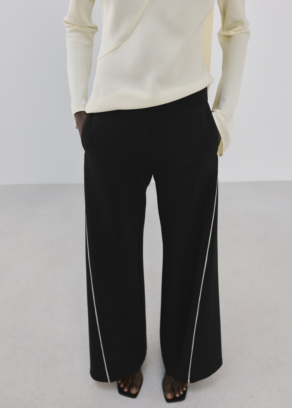 Coupe droite. Design long. Imprimé à rayures combinées. Deux poches latérales. Taille élastique. Total look.