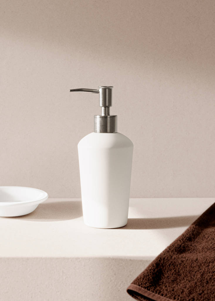 Soap dispenser. Size: 13 cm. 100% ceramic. Coordinates with more products from the collection. Made in Portugal
