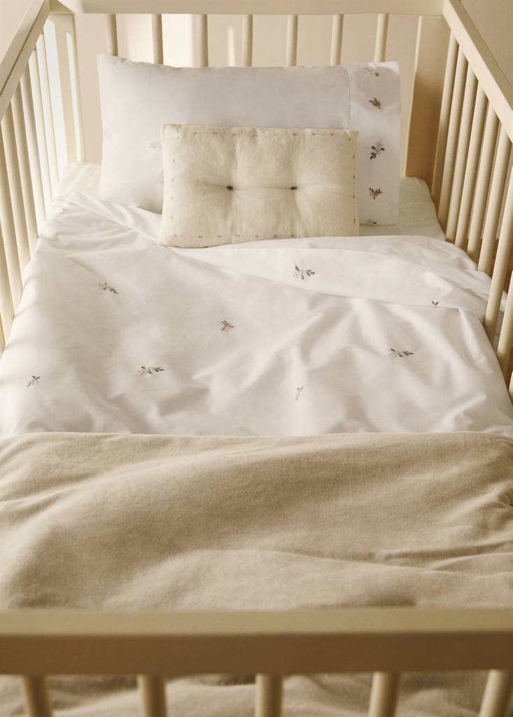 Cotton percale embroidered-flower children's duvet cover for 90 cm bed