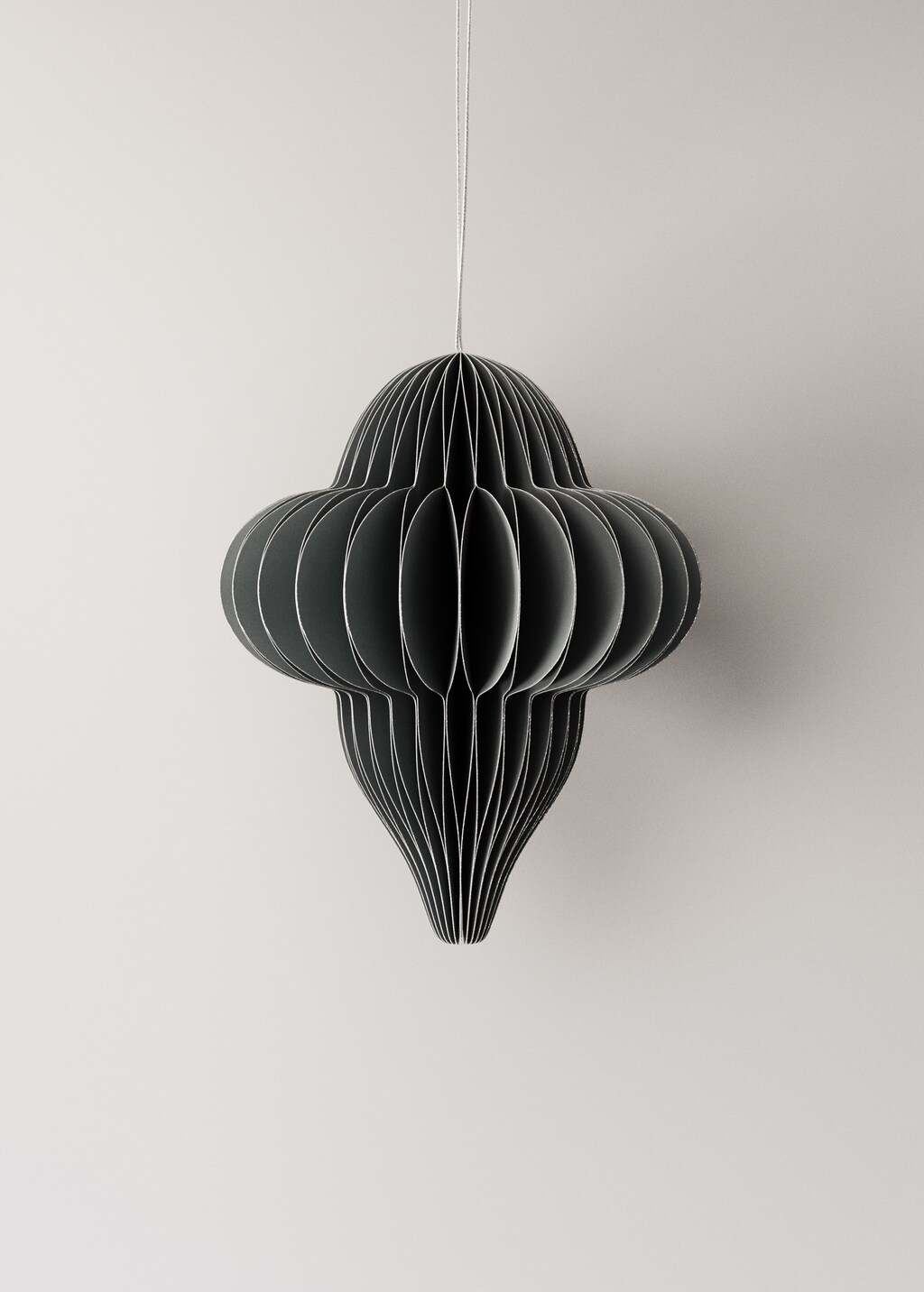 Pack of 3. 100% paper. Shiny finish. This set includes three paper ornaments with shiny finishes that easily close with a magnet. Perfect for adding a touch of elegance and sparkle to your Christmas décor. Inside magnet fastening. Includes ribbon for hanging. Pair it with more items. Christmas Collection.