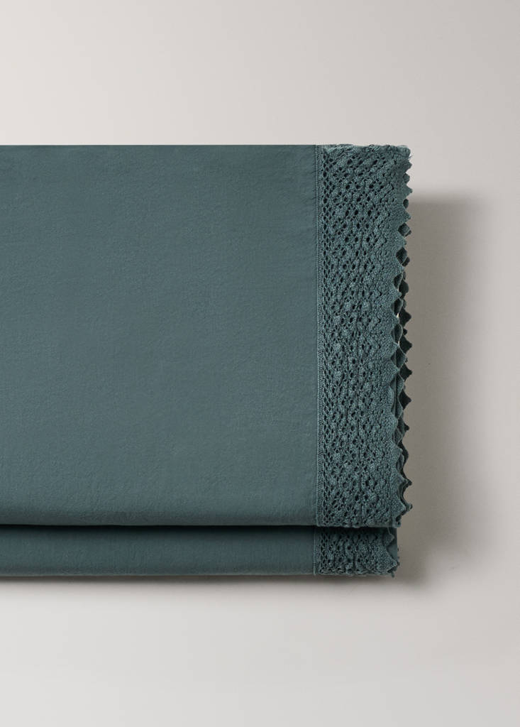 100% Cotton. Washed cotton. Garment-dyed fabric. Pleasant and soft fabric. Lace details. Dimensions: 160x280cm. Single bed 90/105 cm. Made in Portugal. Coordinates with more products from the collection
