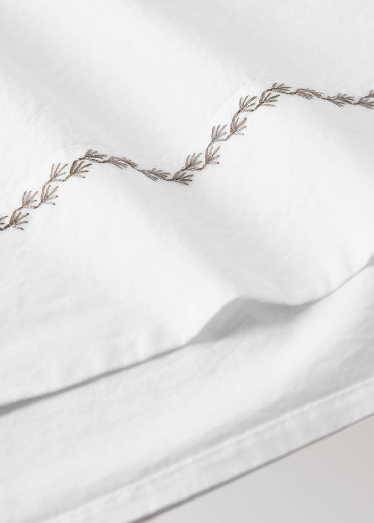 Percale cotton children's top sheet with embroidered detail for 90 cm bed