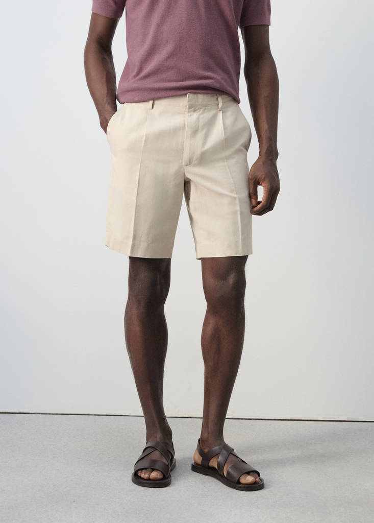 Regular fit cotton-linen Bermuda shorts