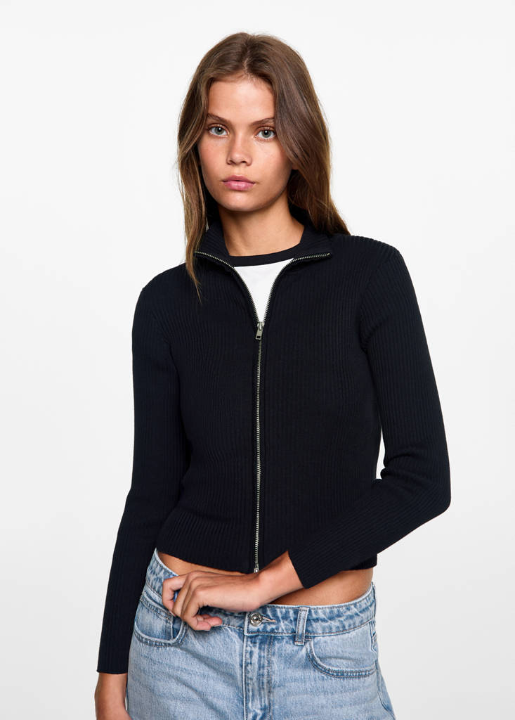 Zipped knit cardiganCurrent price [10 995 Ft ]10 995 FtSelect a colourDark NavySelect your sizeXXSNot available. I want it!XSNot available. I want it!SNot available. I want it!MNot available. I want it!LNot available. I want it!DimensionsNotify meAdd to WishlistSee lookFree delivery to store100% Cotton. Cable knit fabric. Straight design. High neck. Short design. Double zip closure. Long sleevesDetails, composition and careStore availabilityItem qualitiesRecycled cottonAt least 20%This fibre is obtained from pre- and post-consumer textile waste that is transformed into new fabrics.
