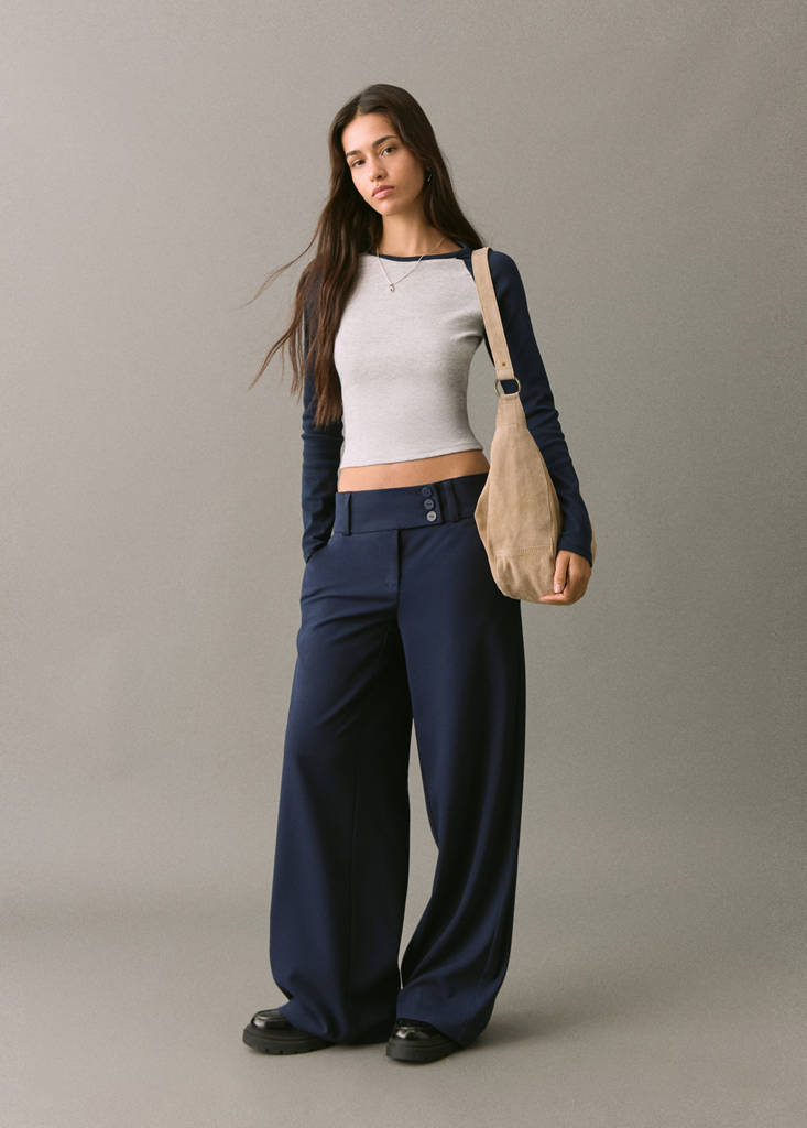 Crafted from stretchy viscose fabric, this long design features a suit style with a straight fit. Its low rise is complemented by a zip and a button fastening, as well as belt loops