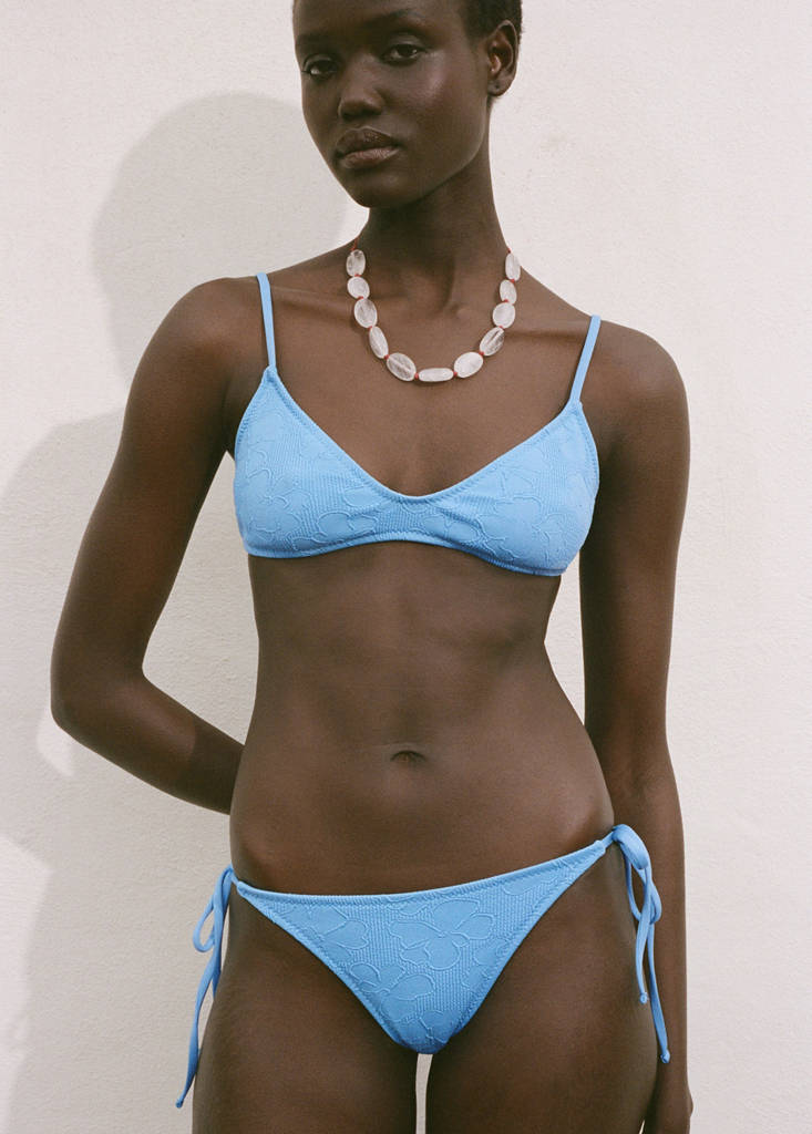 Floral-embroidered bikini bottomsCurrent price [8 595 Ft ]8 595 FtSelect a colourSky BlueSelect your sizeXSNot available. I want it!SNot available. I want it!MNot available. I want it!LNot available. I want it!DimensionsNotify meAdd to WishlistSee lookFree delivery to storeBrazilian style. Flowered embroidery. Side Tie Closures. Set AvailableDetails, composition and careStore availability