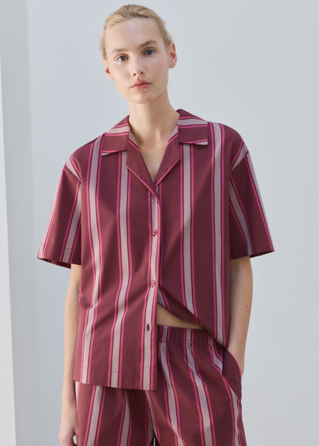 Short-sleeve striped pyjama top