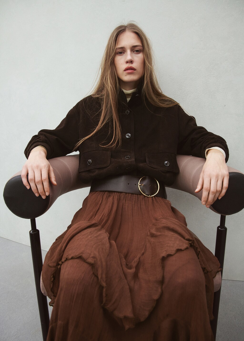 Gauze fabric. Long design. A-line design. Ruffle detail. Adjustable Elastic Waistband. No Fastening. Inner lining.