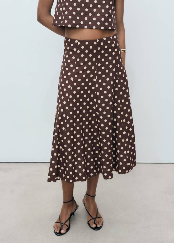 Flared linen skirt with polka dots