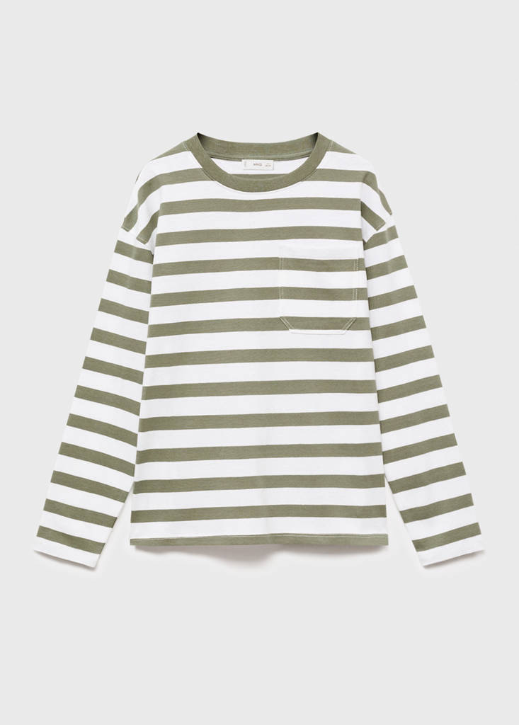 100% pamut szövet. Egyenes kialakítás. Csíkos dizájn. Kontrasztos gallér. Hosszú ujj. Zseb a mellkason. Back to school