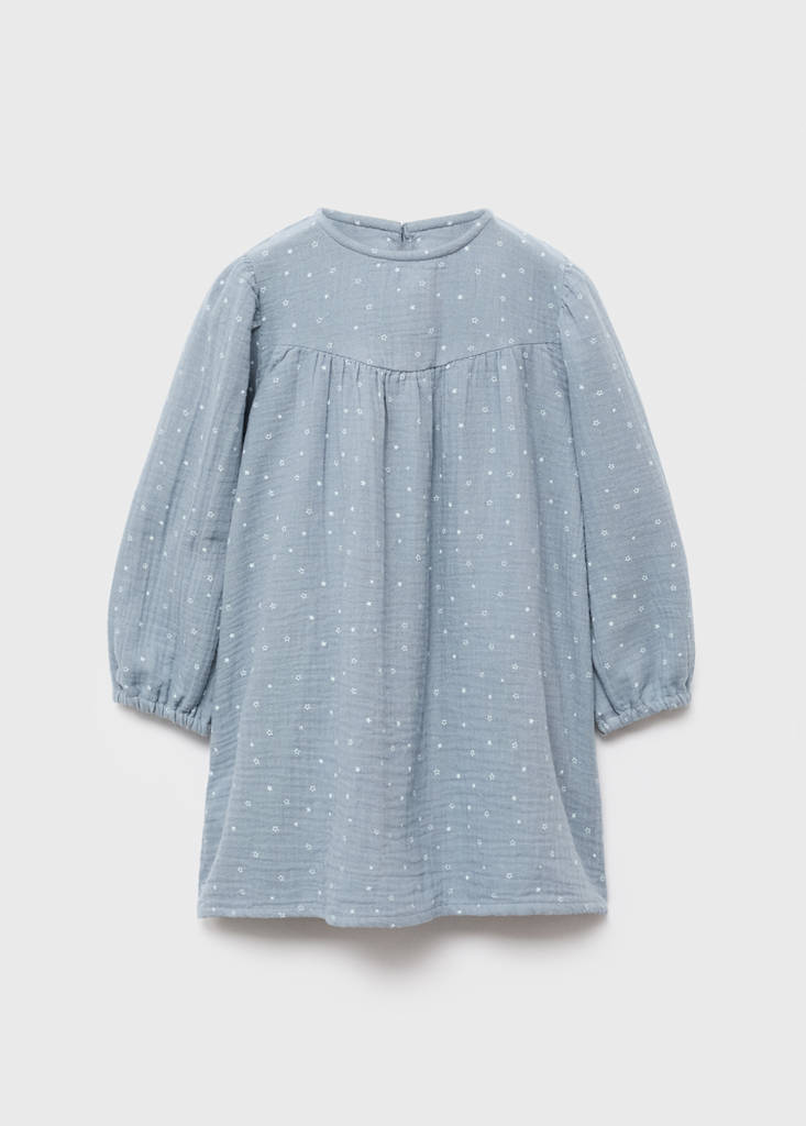 100% pamut szövet. Bambula szövet. Hosszú dizájn. Nyomott minta. Csillagmintás. Kerek nyakkivágás. Hosszú ujjak rugalmas mandzsettával. Ujjrészben ráncolt. Gombos záródás hátul