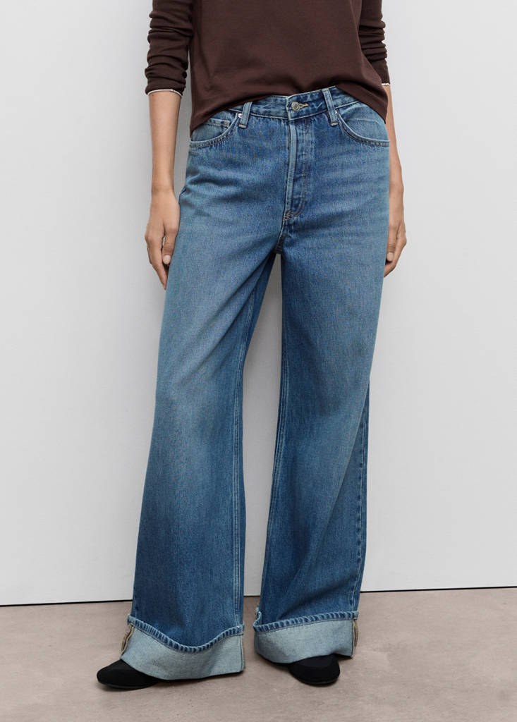 Bő szárú, felhajtott szegélyű farmernadrág
