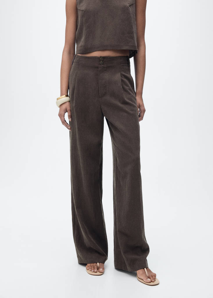 Lyocell szövet. Egyenes kialakítás. Hosszú dizájn. Közepes derékmagasság. Övbújtatók. Rakott részlettel. Két oldalsó zseb. Cipzár és dupla gombos elülső zárás. Total look