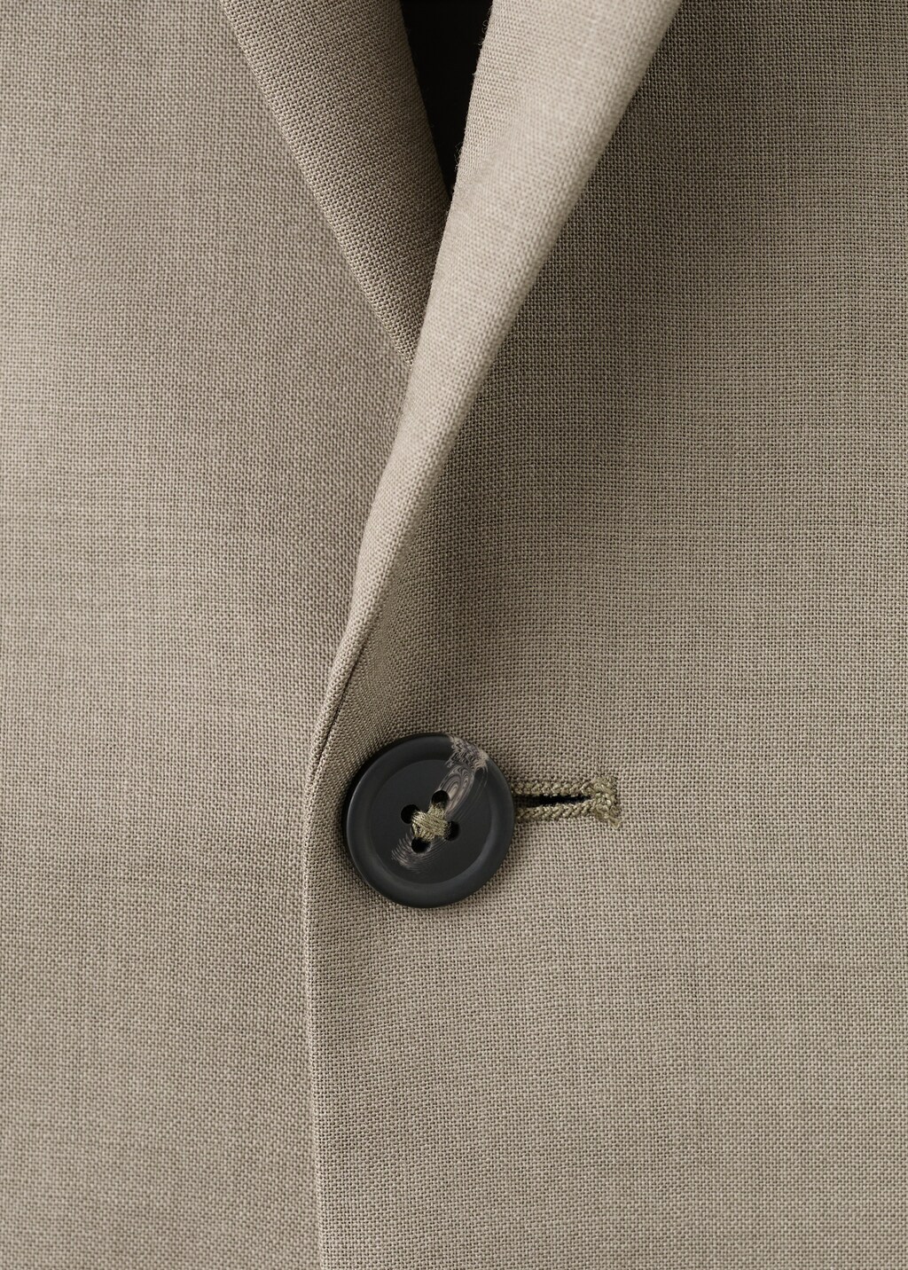 ESSENTIALS: Made to last. Slim fit. 100% virgin wool fabric. Lapel collar with buttonhole. Long sleeves with buttoned cuffs. Chest welt pocket. Two side pockets with flaps. Interior pocket. Two openings at the back of the hem. Inner lining.