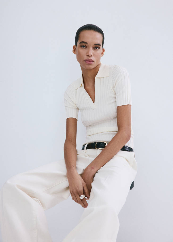 V-neck knit sweaterCurrent price [Rp 699.000 ]Rp 699.000Select a colourEcruSelect your sizeXSNot available. I want it!SNot available. I want it!MNot available. I want it!LNot available. I want it!XLNot available. I want it!DimensionsNotify meAdd to WishlistSee lookConvenient home deliveryFine knit fabric. Tailored Design. Shirt collar. V-neckline. Short sleeves. No Fastening. Available PlusDetails, composition and careStore availability