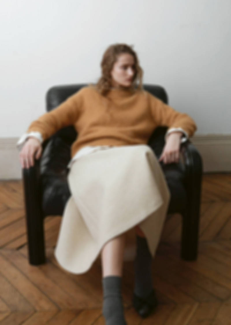 Alpaca-blend fabric. Straight design. Round neck. Long sleeves
