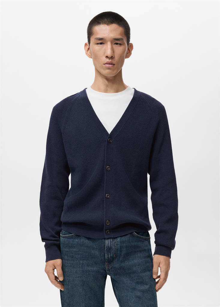 Eksklusif Online. Kain katun. Kain rajutan bergaris. Siluet lurus. Lengan panjang dengan manset elastis. Penutupan kancing depan. Bawah lurus