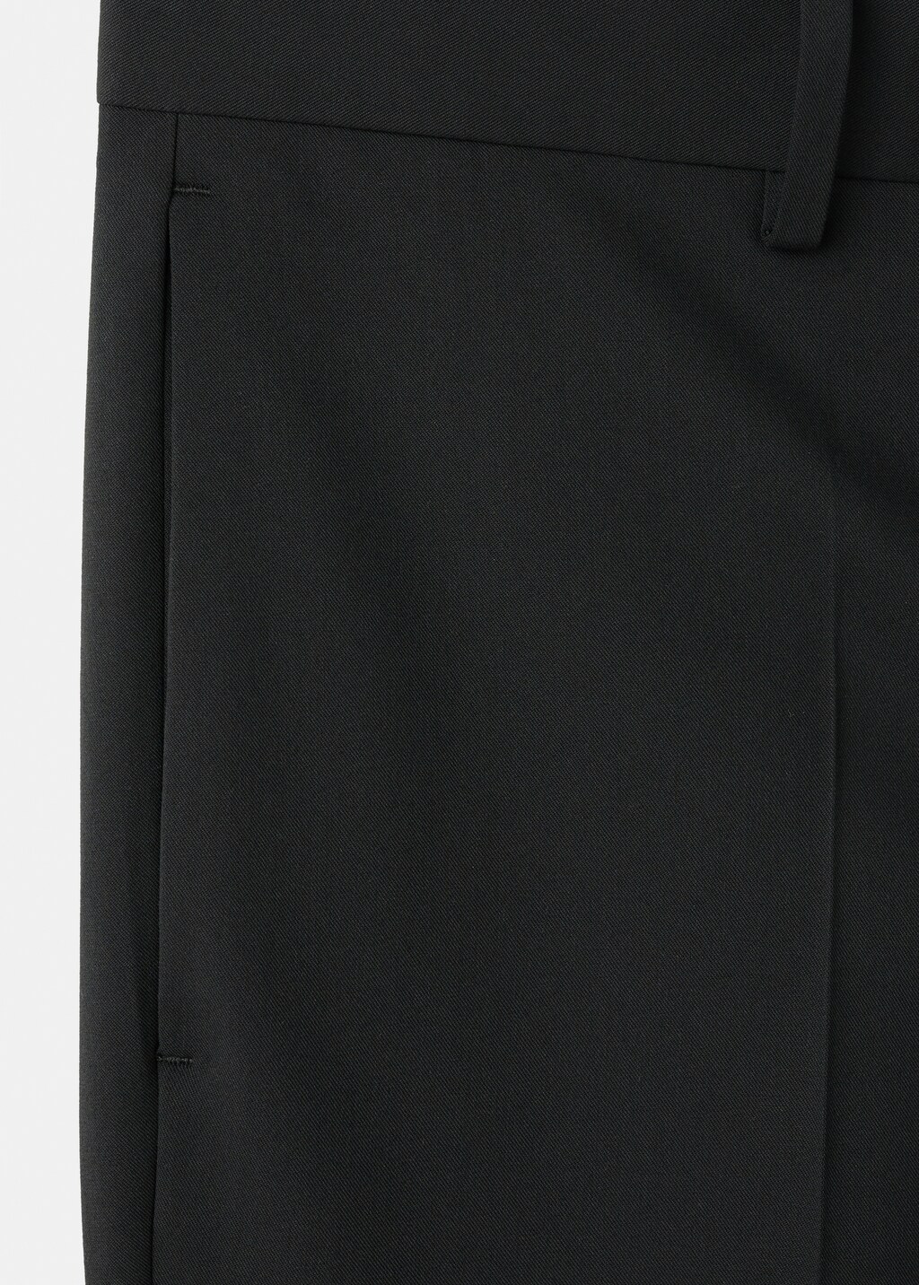 Super slim fit. Cotton-viscose blend fabric. Ironed stripe detail at front and back. Two side pockets. Two welt pockets with button at the back. Front closure with zip and concealed buttons. Belt loops.