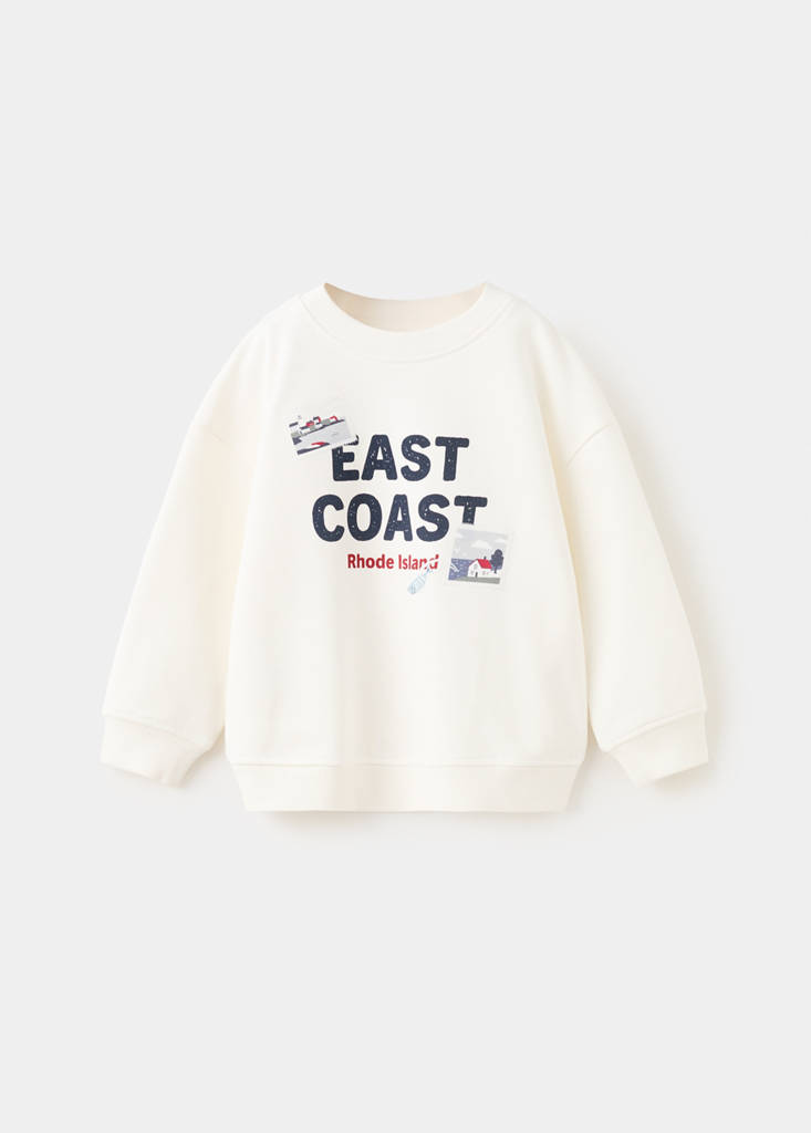 100% cotton fabric. Straight design. Round neck. Long sleeves. Printed drawing on the chest. Ribbed finish on neck, sleeves and hem. Total look
