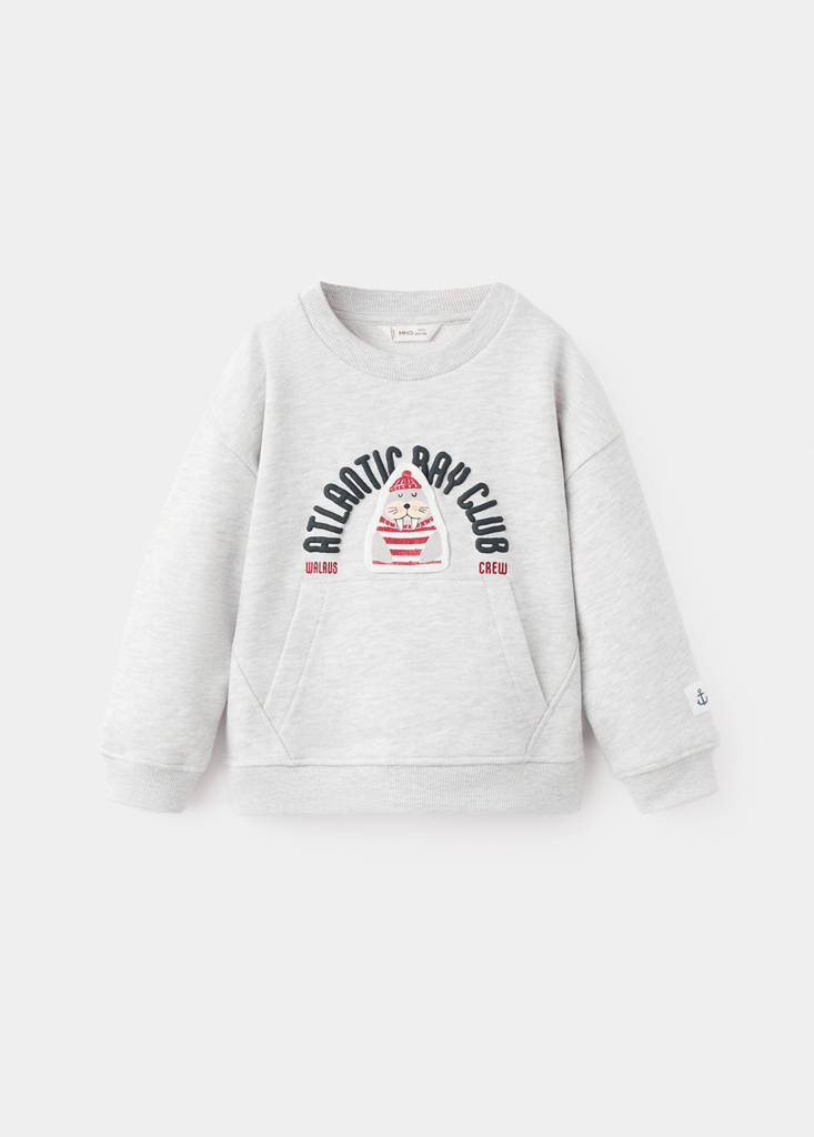 Cotton fabric. Straight design. Round neck. Long sleeves. Printed drawing on the chest. Front patch pocket. Ribbed collar, cuffs and hem. Valentine Collection