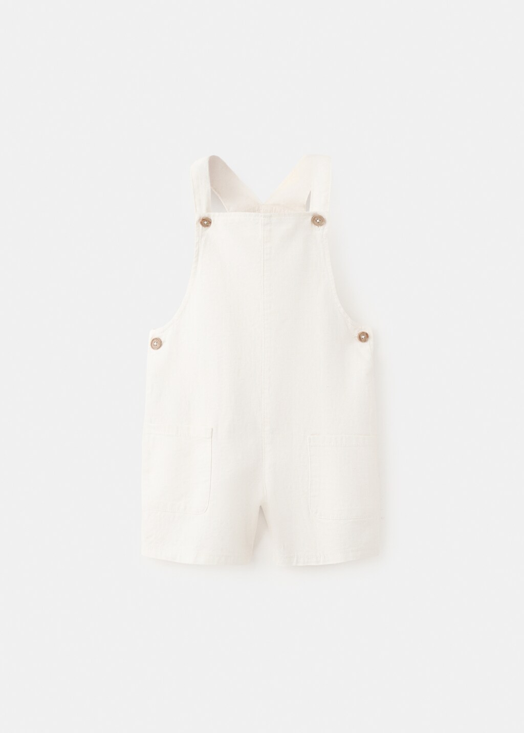 Cotton and linen blend fabric. Straight design. Straight collar. Straps with button closure. Two front pockets. Button closure on the sides.