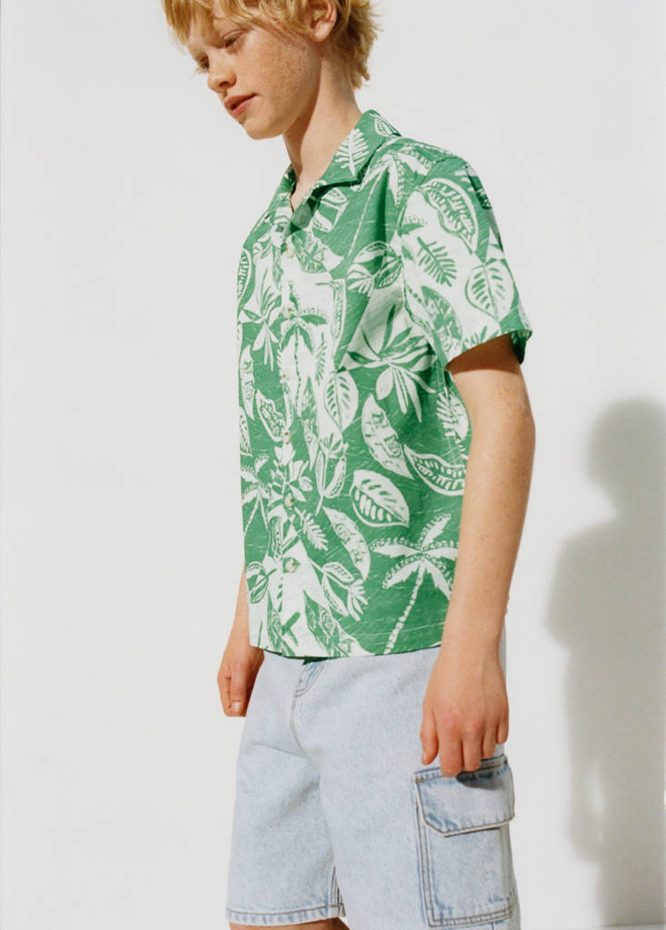 100% cotton denim-style fabric. Cargo design. Short design. Elasticated waistband. Belt loops. Five pockets. Two cargo pockets. Zip and button fastening