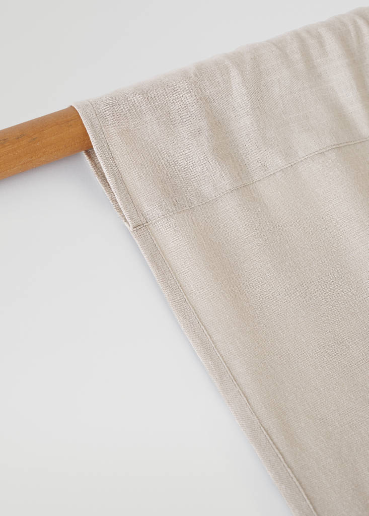 Online Exclusive100% cotton medium-opacity curtainCurrent price [€ 39.99 ]€ 39.99Select a colourSandSelect your size145x260cmAddAdd to your wishlistSee lookFree delivery to store100% Cotton. Size: 145x260cm. Medium opacity. Sold by unit. Ideal for subtly filtering light. Light melange effect. Hem finish. Rod curtain. Available in different coloursDetails, composition and careStore availability