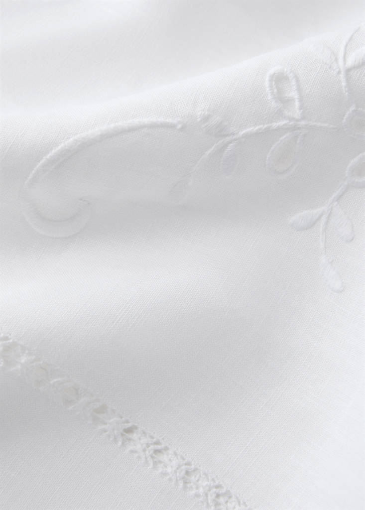 100% Linen. Size: 170x250cm. Structure of durable and high-quality materials. Embroidered floral details. Adds a touch of simplicity and elegance to your table. Available in various sizes
