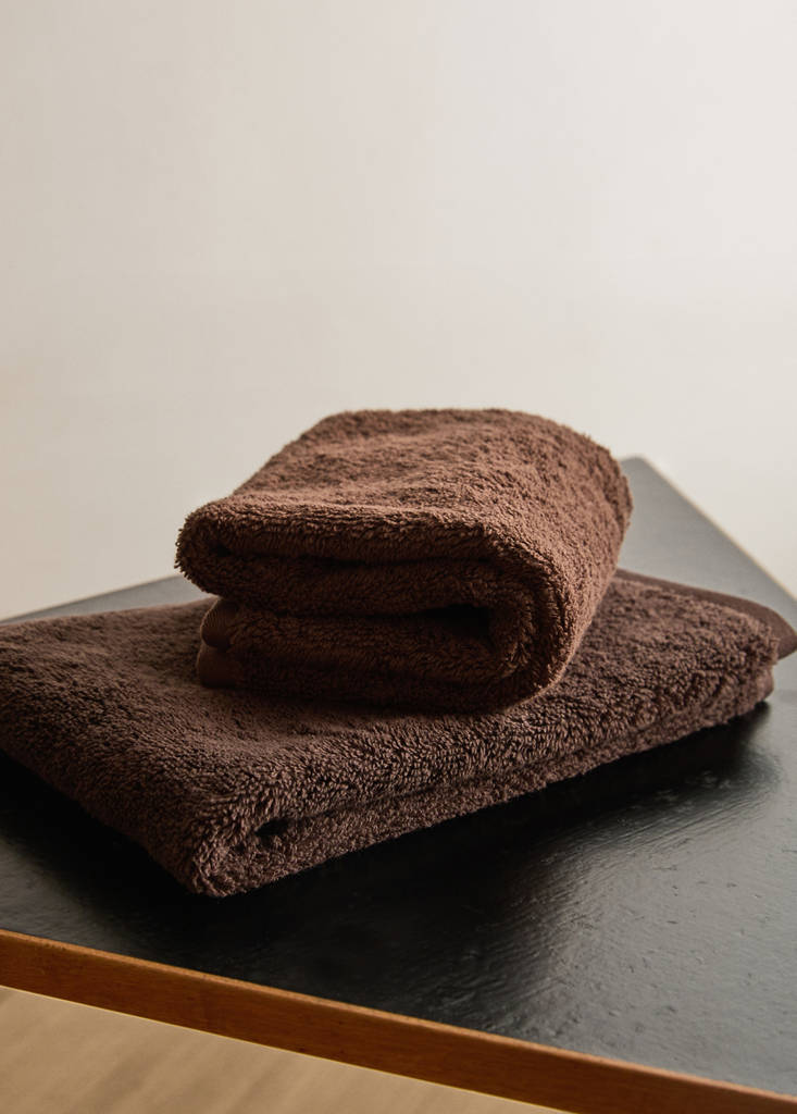 Bath towel. Size: 30x50cm. 600 GSM. Plain design. Natural fibre fabric. 100% Cotton. High-quality and durable materials. Pleasant texture. High grammage and 100% cotton fabric to have a good absorption in your bathroom. Wide range of colors to combine with other towel models, bathrobes, and Mango Home accessories. Discover the ultimate softness in your bath linen along with excellent absorbency. Pleasant and soft texture. Matches with other sizes in the collection. Coordinates with more products from the collection