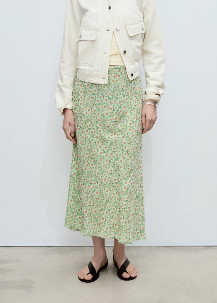 Long floral flared skirtCurrent price [€ 49.99 ]€ 49.99Select a colourPastel GreenSelect your sizeXXS-XSNot available. I want it!S-MNot available. I want it!L-XLNot available. I want it!XXLNot available. I want it!DimensionsNotify meAdd to WishlistSee lookFree delivery to storeGauze fabric. Long design. A-line design. Elasticated waistband. No Fastening. Lining only. Total look. Available PlusDetails, composition and careStore availability