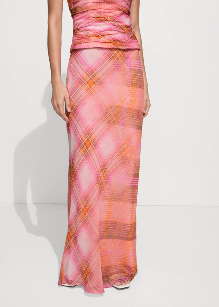 Fluid fabric. Long design. Straight design. Checked print. Elasticated waistband. No Fastening. Inner lining. Total look. Printed design