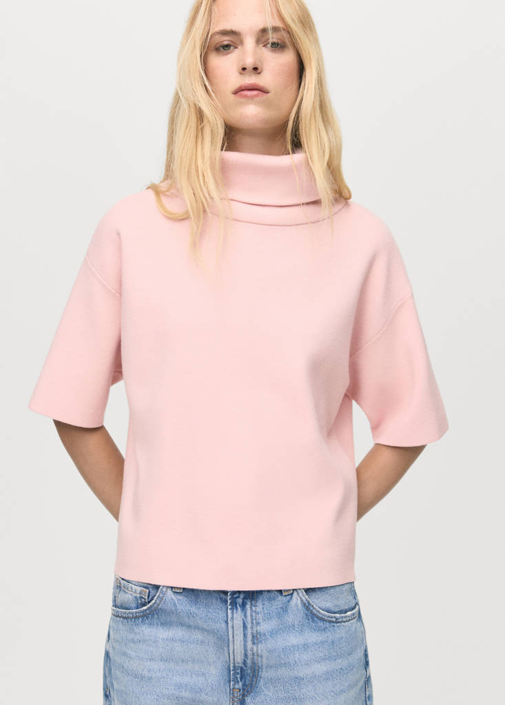 Short-sleeved turtleneck sweaterCurrent price [€ 45.99 ]€ 45.99Select a colourPinkThe model is wearing size S and is 178cm tall.Select your sizeSNot available. I want it!MNot available. I want it!LNot available. I want it!DimensionsNotify meAdd to WishlistSee lookFree delivery to storeKnit fabric. Straight design. High neck. Short sleeves. No FasteningDetails, composition and careStore availability