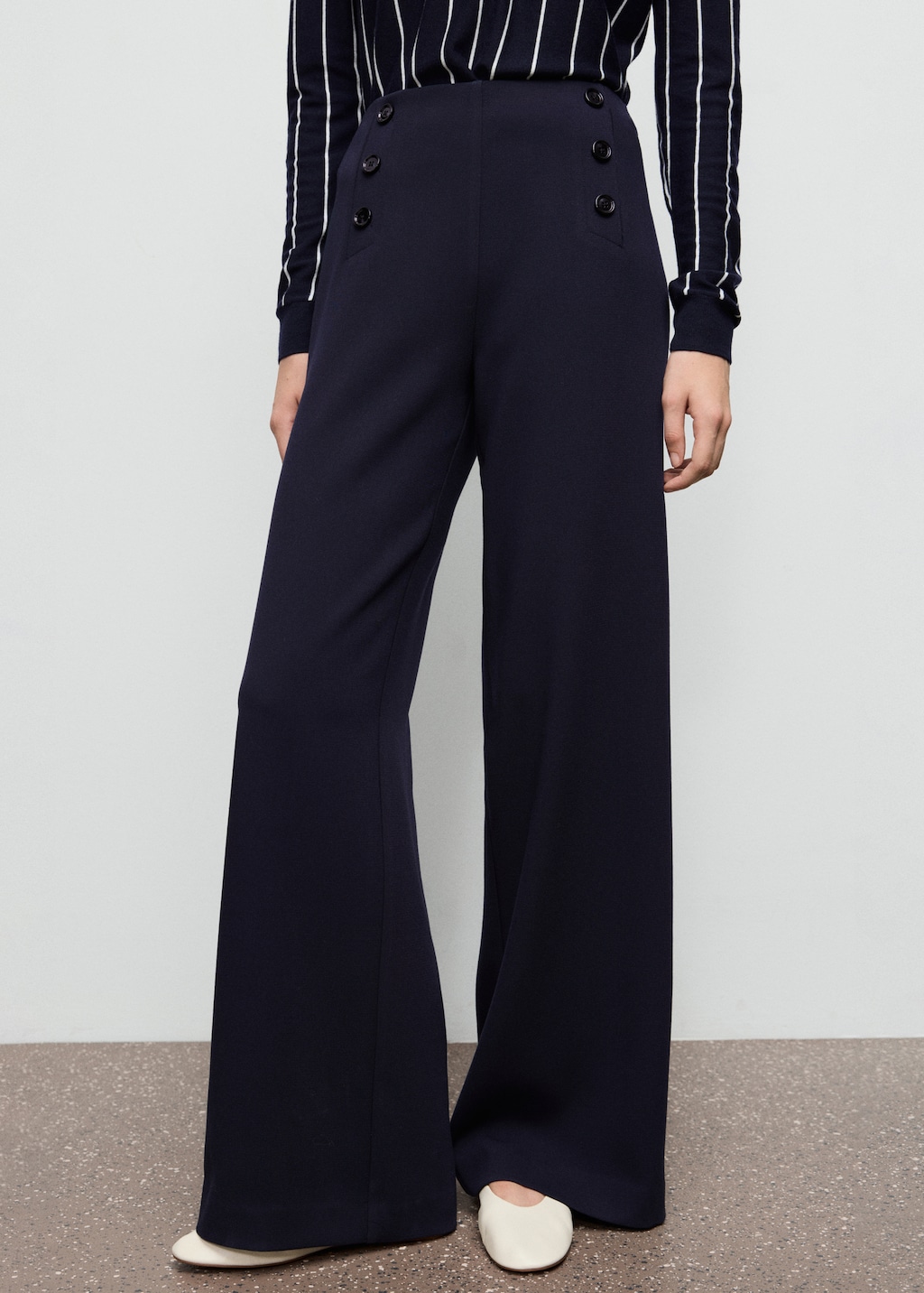 Fluid fabric. Straight Design. Long design. High waist. Two side pockets. Invisible side zip fastening. Button detail on the front. Inner lining.