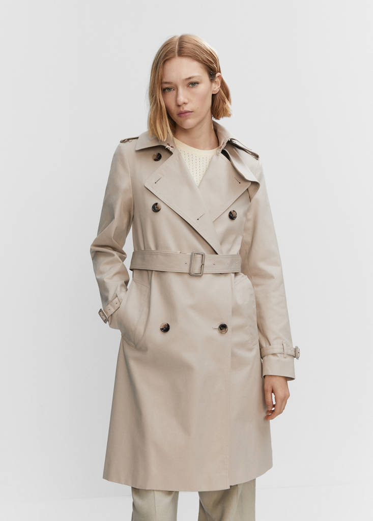 100% cotton fabric. Water-repellent: The durable finish of this garment protects against light rain, repelling contact with water and raindrops. Straight design. Crossover design. Medium design. Lapel-collar. Long sleeve. Loops on the cuffs. Two side pockets. Adjustable belt. Back-slit hem. Button fastening on the front section. Tortoiseshell effect buttons. One of the colours is an online exclusive . Plus Size Available. The blue colour is an online exclusive