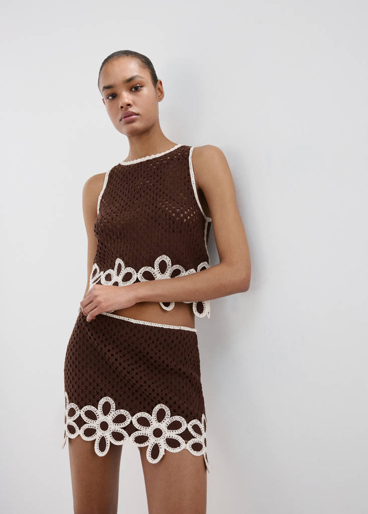 Crochet skirt with floral embroidery