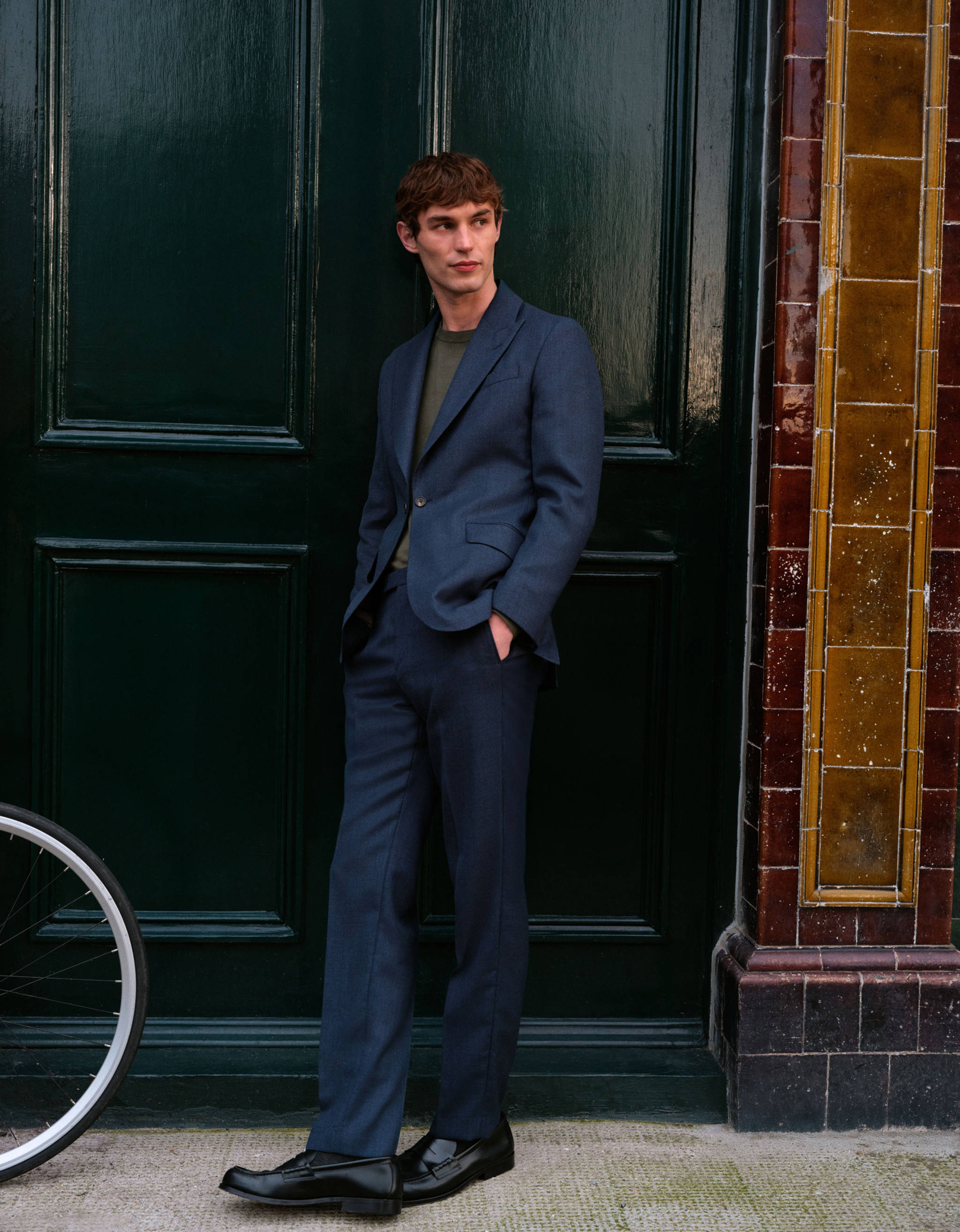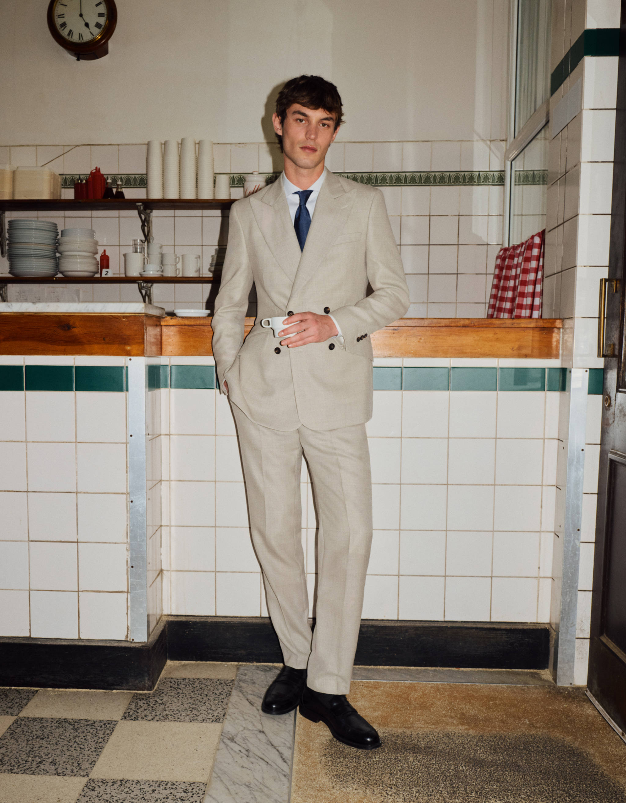 MADE FROM AN EXQUISITE BLEND OF RWS WOOL, SILK AND LINEN FROM HISTORIC ITALIAN HOUSES SUCH AS MARZOTTO AND LANIFICIO CAMPORE, LEADERS IN TAILORING. ITS DOUBLE-BREASTED DESIGN WITH PEAK LAPELS, HALF LINING AND SLANTED POCKETS PROVIDES LIGHTNESS, STRUCTURE AND A SOPHISTICATED, CONTEMPORARY CHARACTER.