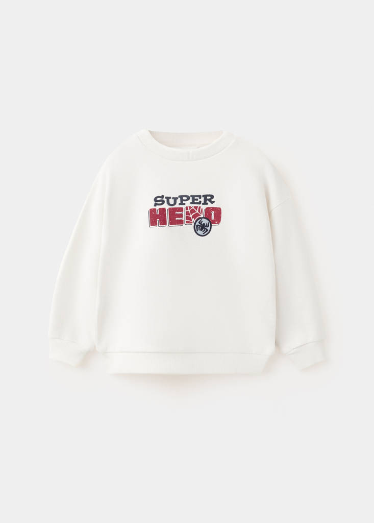 100% cotton fabric. Straight design. Round neck. Long sleeves. Text printed on the chest. Spiderman print. Spidey Print. Ribbed collar, cuffs and hem. Licenses