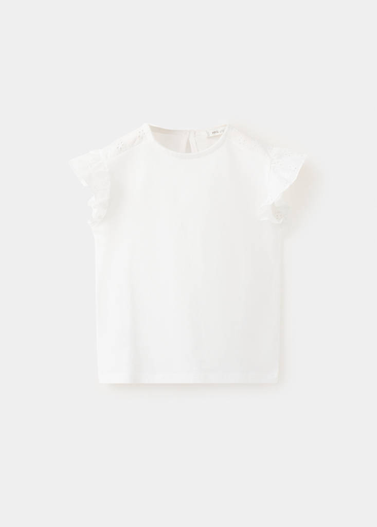 Crafted from 100% cotton fabric, this garment features a straight design with a round neckline. The short sleeves with ruffles and embroidered details add a special touch. Teardrop fastening at the back.