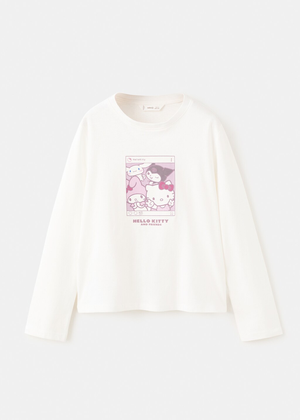 100% cotton fabric. Printed design. Hello Kitty print. Round neck. Long sleeve. Licenses.