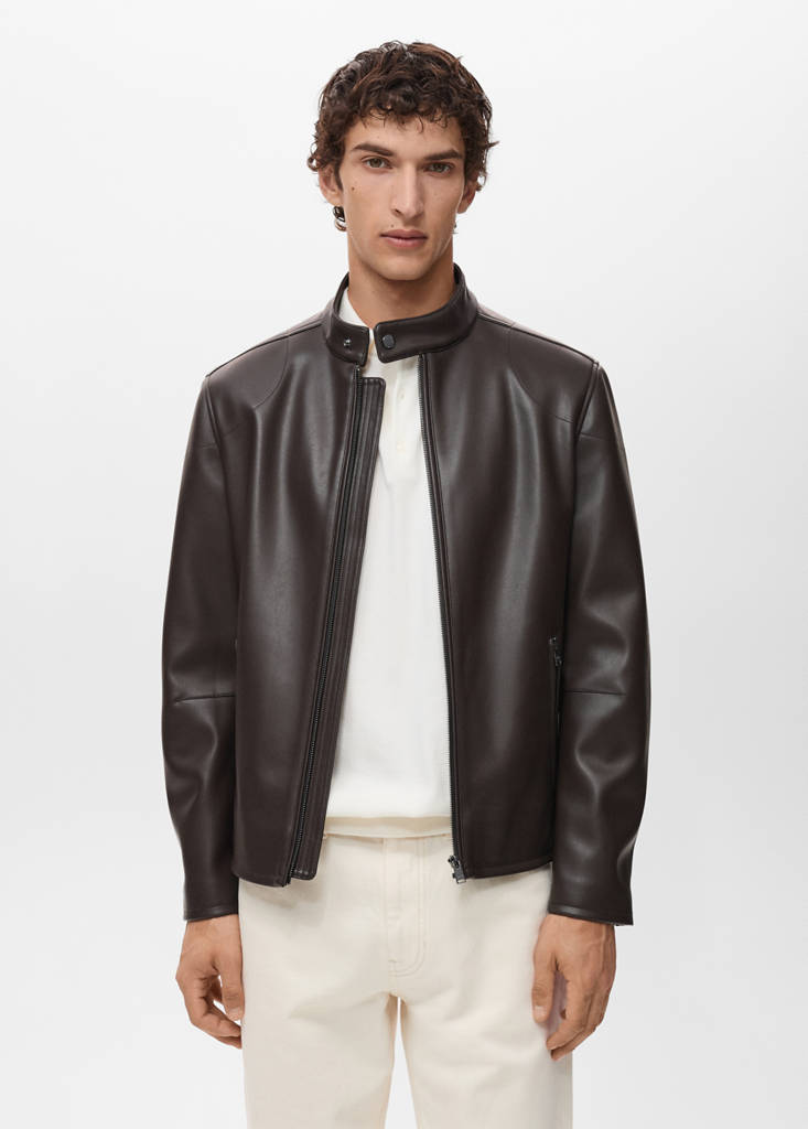 Zip-up faux-leather jacketCurrent price [Rs. 8,390.00 ]Rs. 8,390.00Select a colourChocolateThe model is wearing size M and is 190cm tall.Select your sizeXSNot available. I want it!SNot available. I want it!MNot available. I want it!LNot available. I want it!XLNot available. I want it!XXLNot available. I want it!DimensionsNotify meAdd to WishlistSee lookFree delivery to storeThe colour black is exclusively online. Slim fit. Faux leather. Two front pockets with zip closures. Cowl collar with button closure. Front zip closure. Zipped cuffsDetails, composition and careStore availability