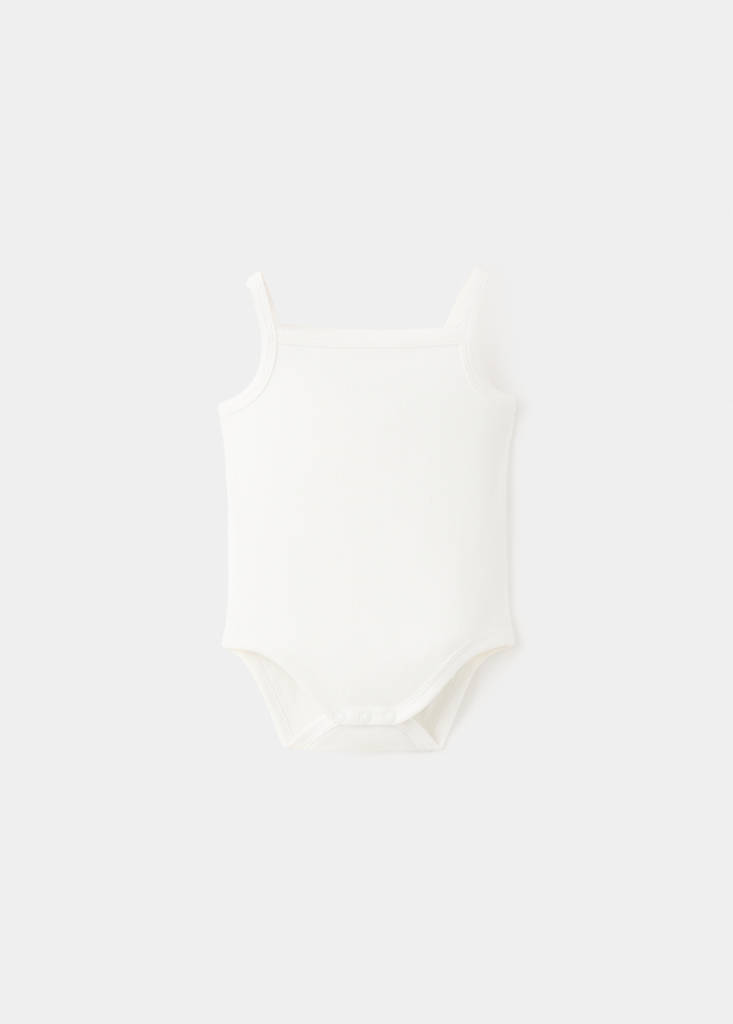 Crafted from ribbed cotton fabric, this bodysuit design features a straight neckline and thin straps. It includes a practical press-stud fastening at the bottom.