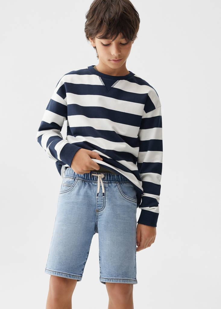 Comfy-fit denim Bermuda shortsCurrent price [IQD 40,000.00 ]IQD 40,000.00Select a colourLight BlueSelect your size5 (110cm)6 (116cm)7 (122cm)8 (128cm)9 (134cm)10 (140cm)11-12 years (152cm)13-14 years (164cm)DimensionsAdd to WishlistSee lookFree delivery to storeCotton fabric. Straight design. Elasticated waist. Five pockets. Cord fasteningDetails, composition and careStore availability