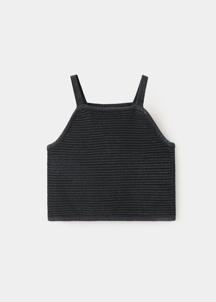100% cotton fabric. Knitted fabric. Textured fabric. Straight design. Straight collar. Straps