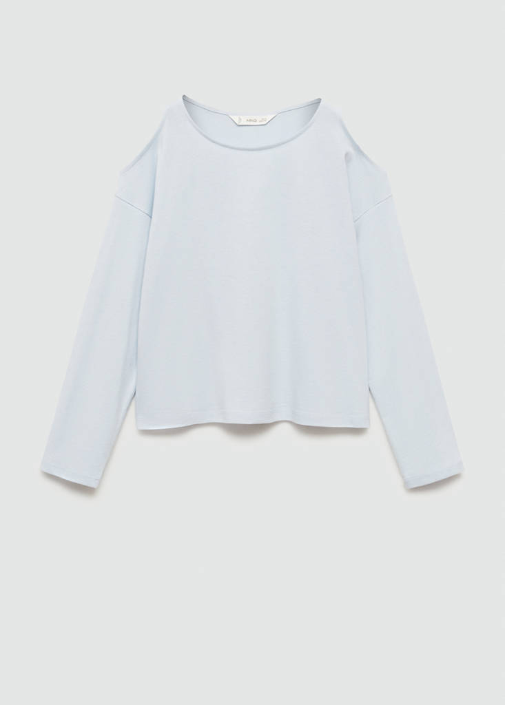 Long-sleeve t-shirt with cut-outCurrent price [IQD 22,000.00 ]IQD 22,000.00Select a colourSky BlueSelect your size5-6 years (116cm)7-8 years (128cm)9-10 years (140cm)11-12 years (152cm)13-14 years (164cm)DimensionsAdd to WishlistSee lookFree delivery to storeFabric with cotton. Straight design. Round neck. Cut-out details on the shoulder. Long sleevesDetails, composition and careStore availabilityItem qualitiesRecycled cottonAt least 20%This fibre is obtained from pre- and post-consumer textile waste that is transformed into new fabrics.