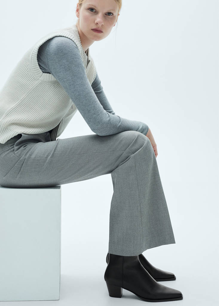 Leather ankle boots with block heelCurrent price [IQD 150,000.00 ]IQD 150,000.00Select a colourBlackThe model is wearing size 41 and is 178cm tall.Select your size3536373839404142Size guideAdd to WishlistSee lookFree delivery to storeSee availability in storeDescription100% bovine leather. Pointed. Block heel. Side zip fastening. 4.5 cm heel.See detailsShare