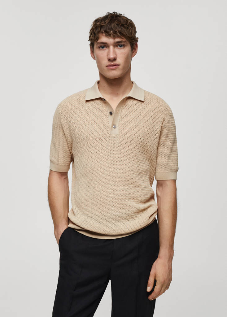 Openwork knit poloCurrent price [IRR 10,900,000.00 ]IRR 10,900,000.00Select a colourBeigeThe model is wearing size M and is 189cm tall.Select your sizeSMLXLXXLDimensionsAdd to WishlistSee lookFree delivery to storeFine-knit fabric. Open-knit fabric. Contrast ribbed finishes on collar, sleeves and bottom hem. Polo-neck with button closure. Short sleeves. Straight hem. Crochet fabricDetails, composition and careStore availability