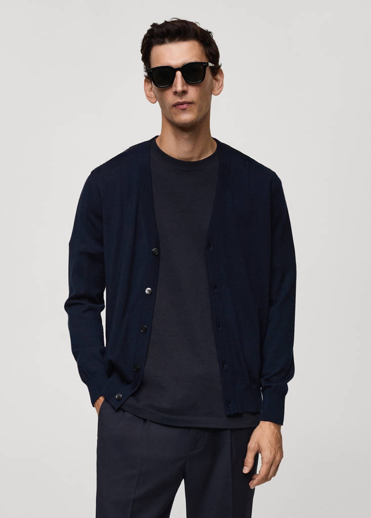 ESSENTIALS: Made to last. Regular fit. 100% merino wool. Long sleeves with elastic cuffs. Medium knit fabric. Untrimmed hem. Front closure with buttons.