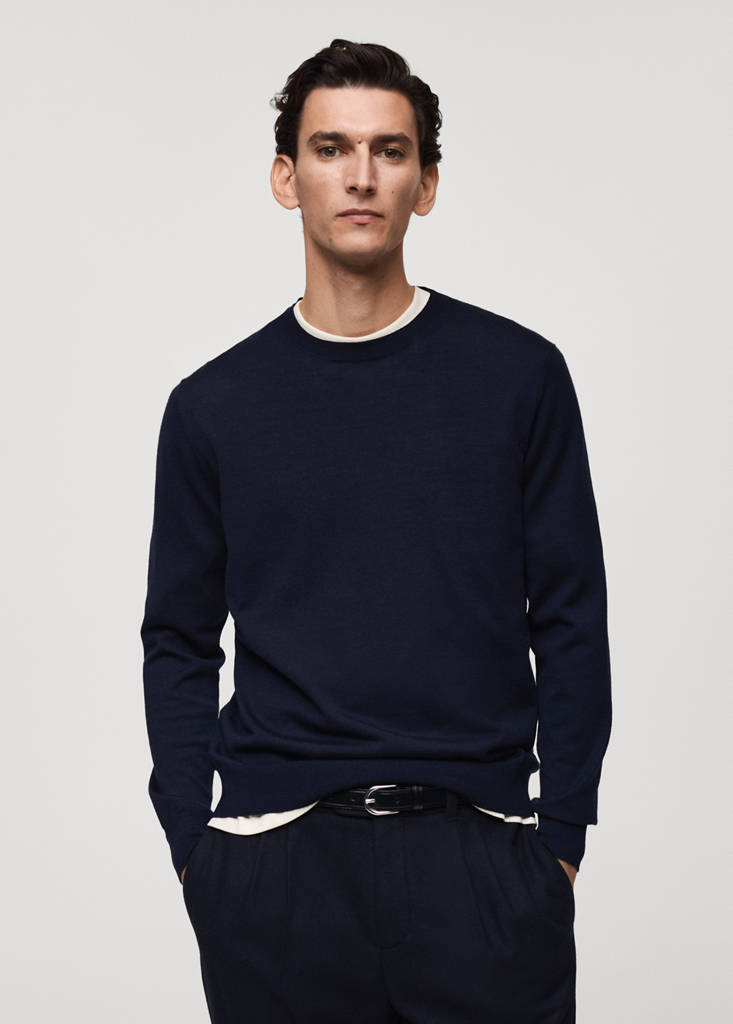 ESSENTIALS: Made to last. Straight-fit. 100% merino wool. Machine washable. Fine-knit fabric. Round neck. Long sleeves. Cable knit finish. 100% wool. Long sleeves with elastic cuffs. Straight hem. Medium knit fabric. Untrimmed hem.