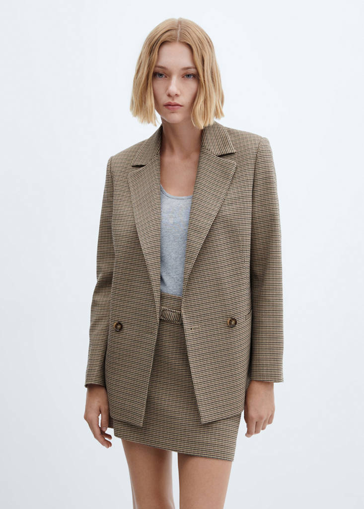 Check-pattern. Wrap design. Straight design. Available in plain and patterned. Notched lapel collar. Long sleeves with buttoned cuffs. Button fastening at the front. Inner lining. Total look. Blazer style. Available Plus. Office looks